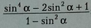 (sin^4α-2sin²α+1)/(1-sin²α)=(sin²α-1)²/(1-sin²α)=-(sin²α-1)²/sin²α=-sin²α+1=1-sin²α=cos²α
