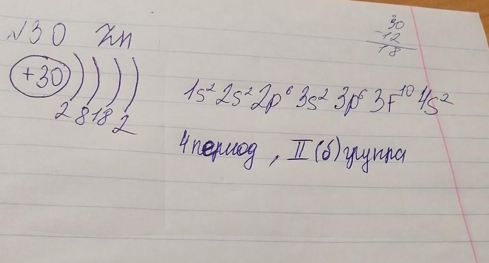 Записать электронную формулу и электронно-графическое изображение элемента, указать семейство: № 30