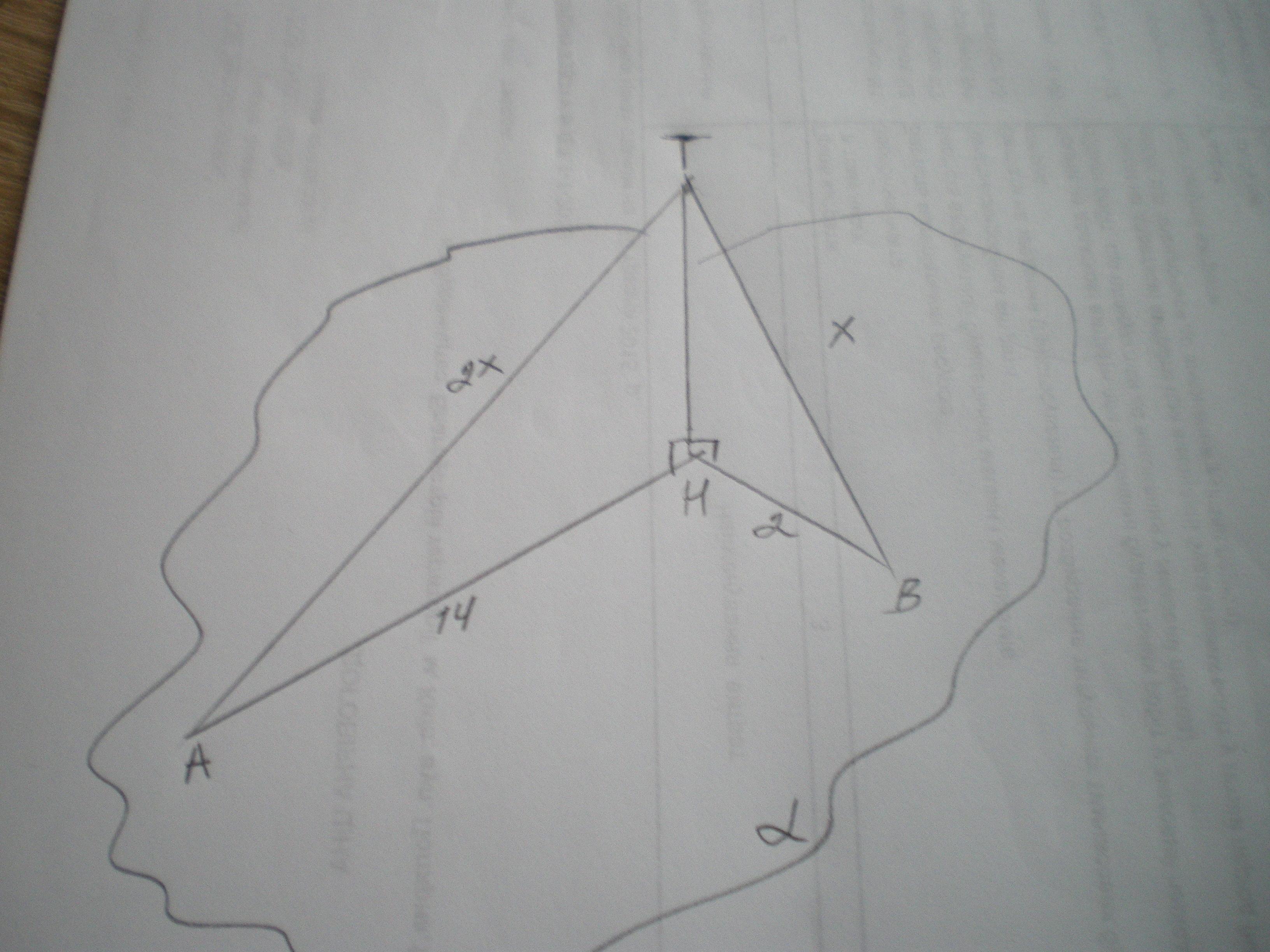 с некоторой точки проведены к данной плоскости две наклонные. Найти длины наклонных, если проекции наклонных равны 2 и 14 см, а наклонные относятся как 1 к 2
