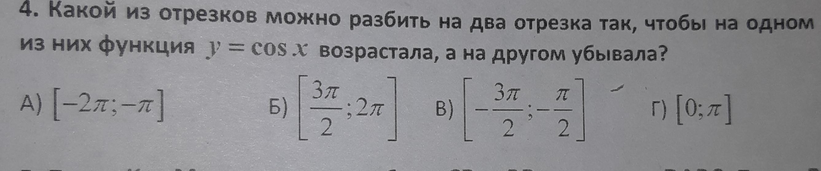 Г не подходит, т.к на всем этом отрезке функция убывает