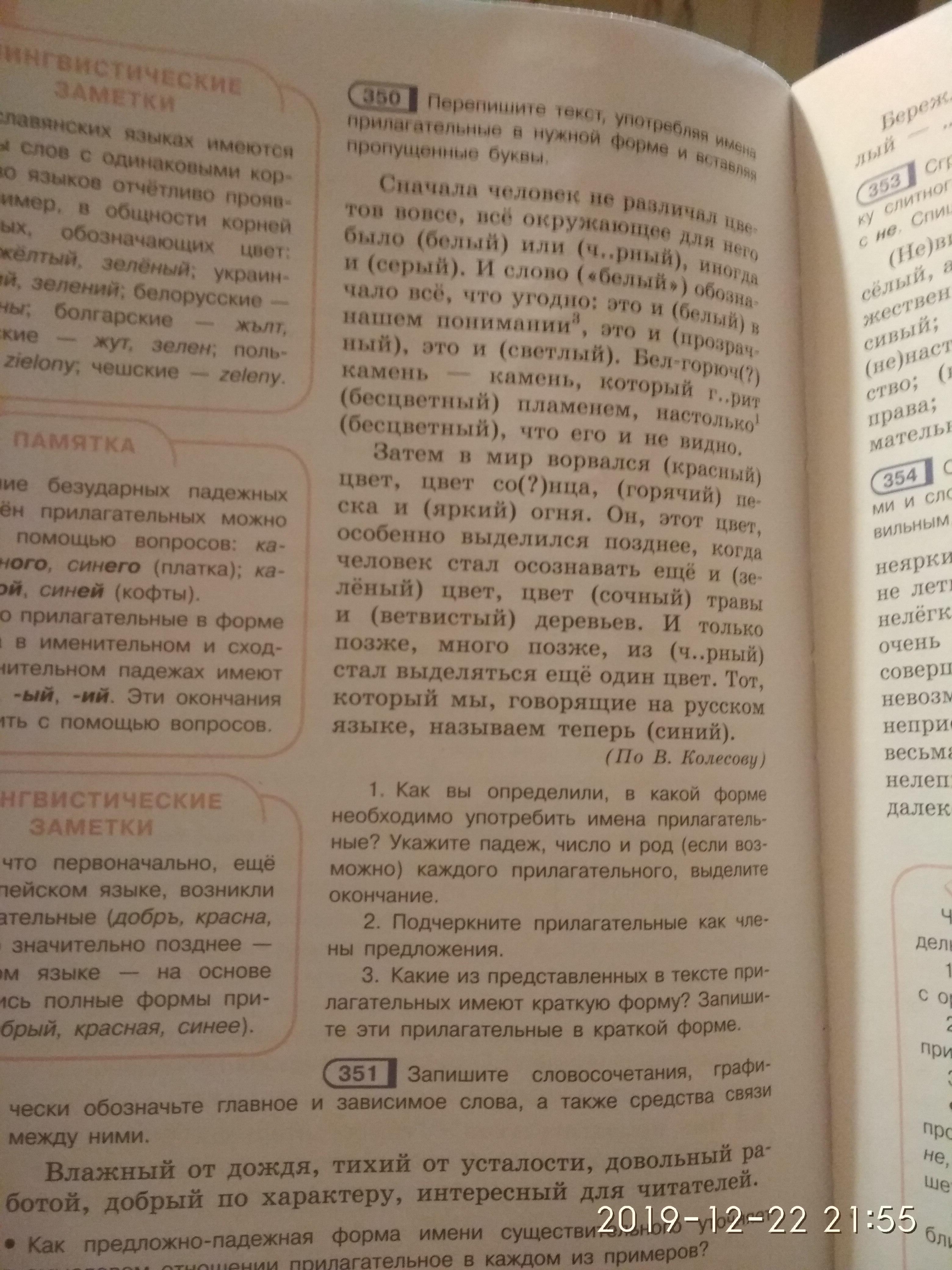 Даю 30 баллов, срочно, помогите, упражнение 350, напишите только прилагательные, разборы и всё такое, текст я уже переписала, прилагательные в правильную форму поставила, вам осталось делать не так много