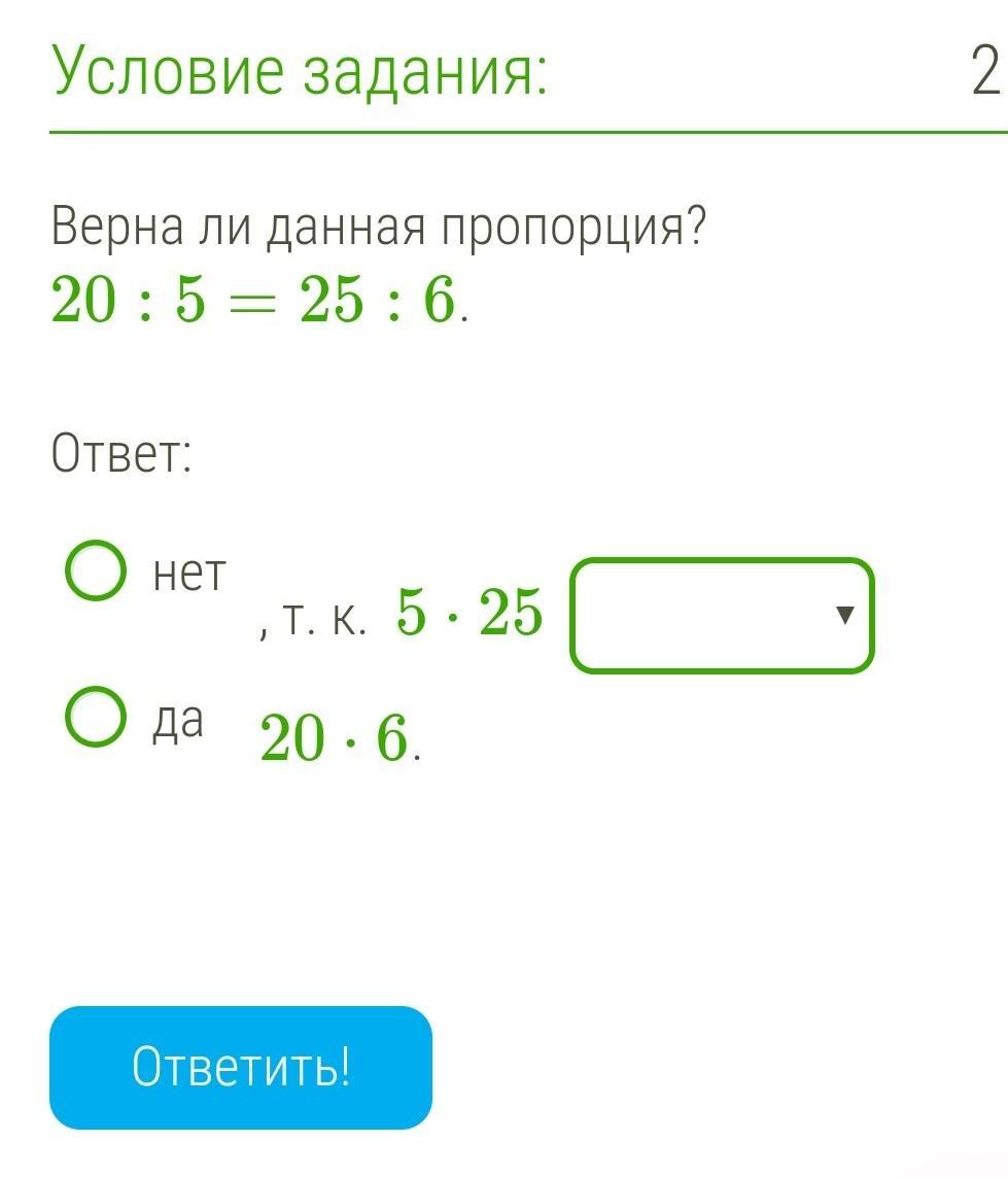 Пояснение: 20/5=4, 25/6≈4,16, 4≠4,16.