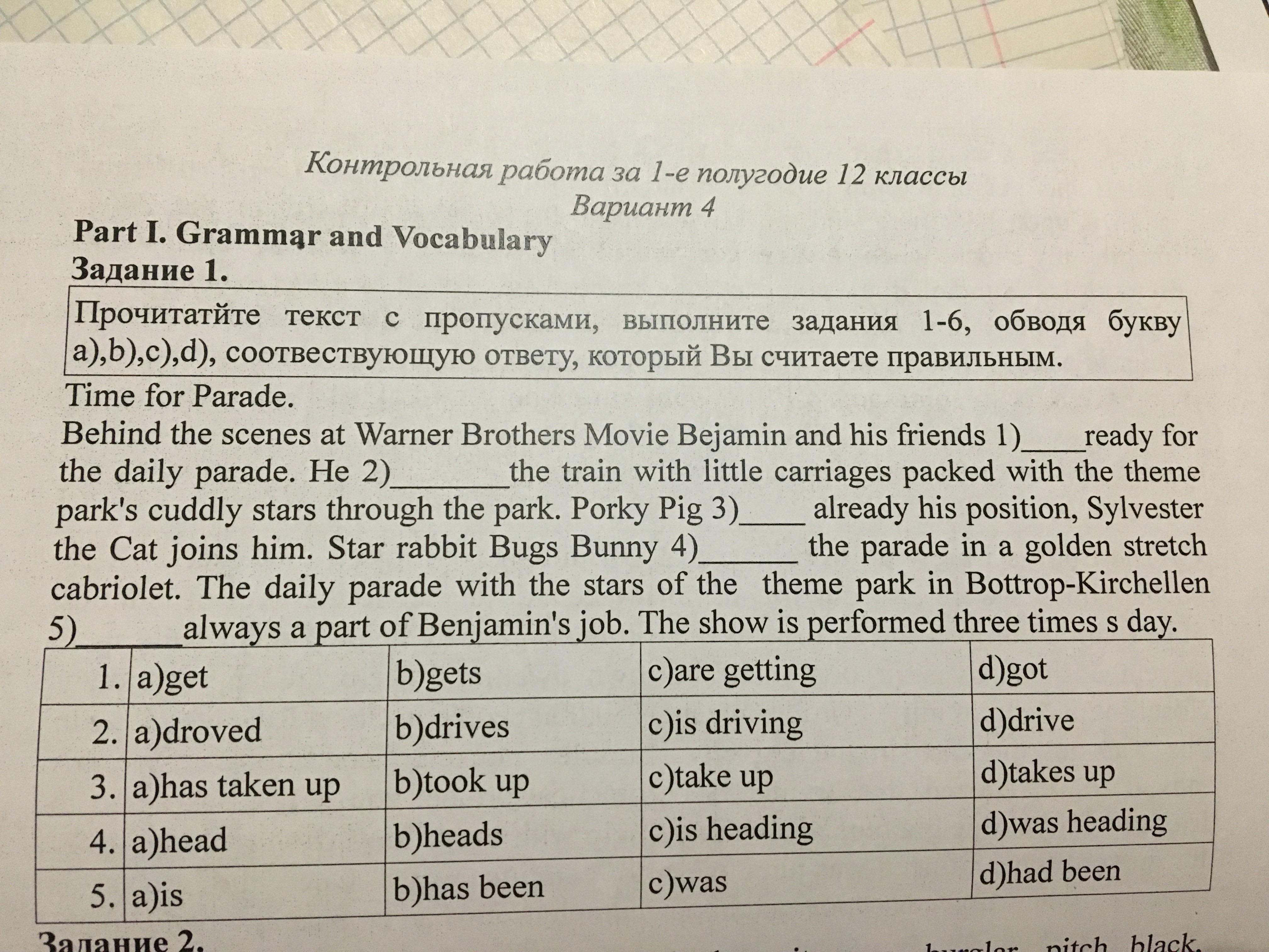 Задание 1. Прочитатите текст с пропусками, выполните задания 1-6, обводя букву a),b),c),d), соотвествующую ответу, который Вы считаете правильным.