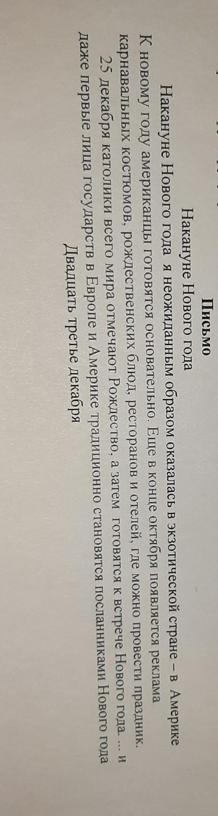 я и моя семья на кануне нового года поехали в экзотическую страну. Там все разговаривали на непонятно нам языке. Мы поехали в отель. Мы заселились и отправильмь осматриваиь город. Ну вот наступил Новый год. Мы сразу вышли на улицу и увидели что вместо ёлки стоит пальма. Стояла пальма потому что не было ёлки. Ну вот мы возле пальмы танцевали дарили друг другу подарки и т.д. В общем это был самый лучший Новый год в моей жизни.