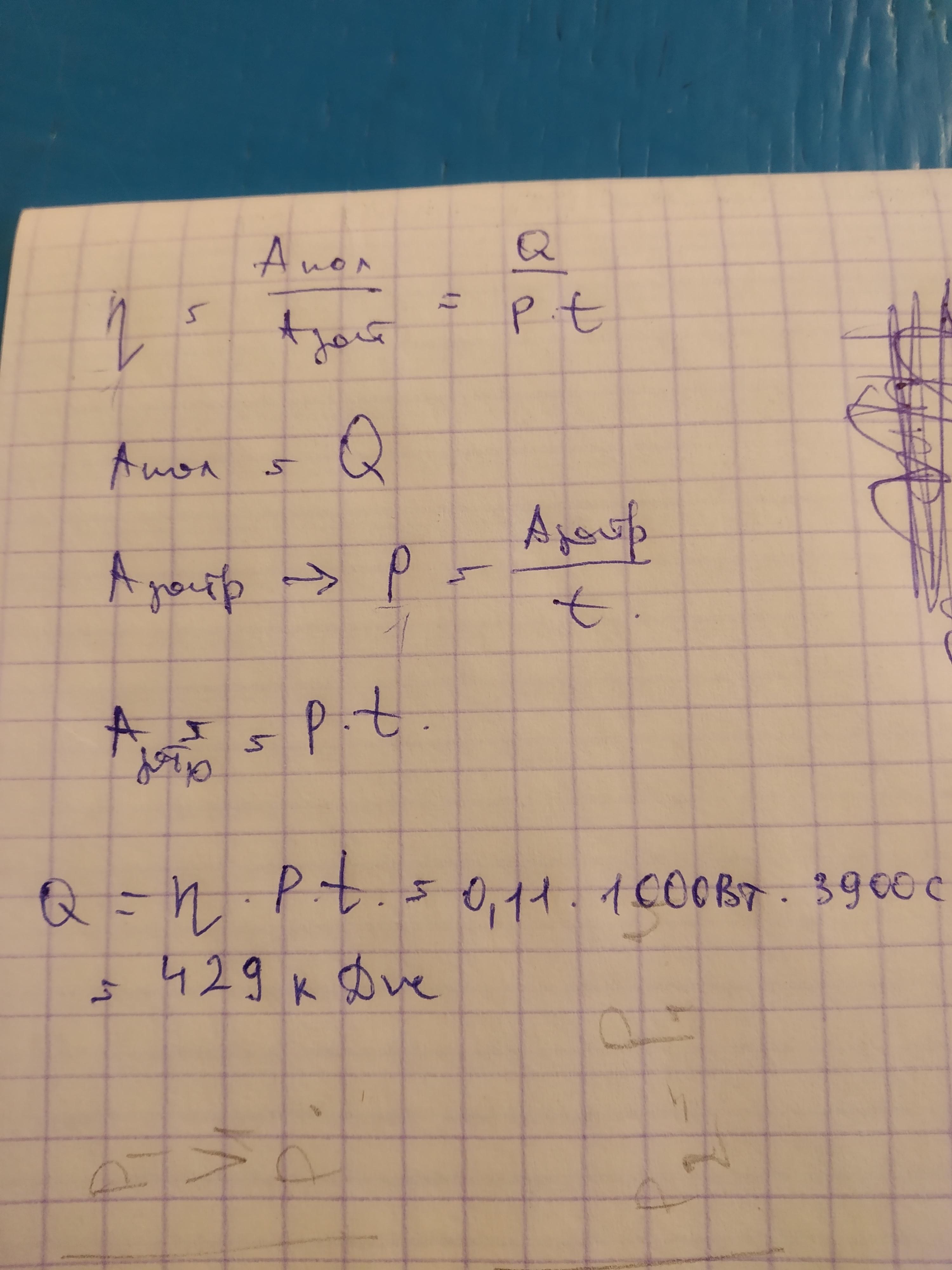 Определи, какое количество теплоты получил за 65 мин тепловой двигатель, если его полезная мощность равна 1 кВт, а КПД равен 11 %?