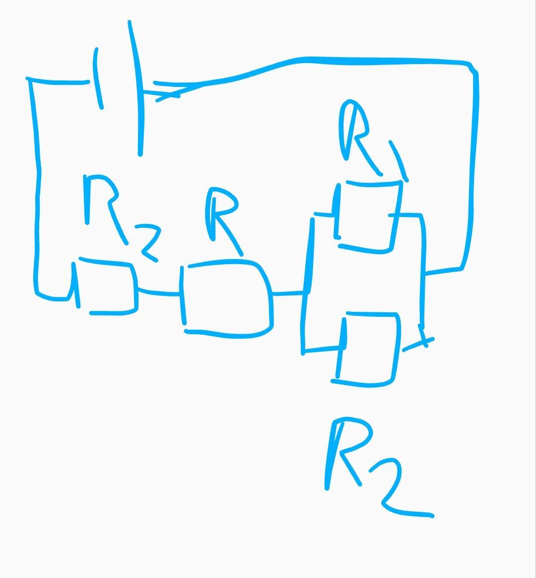 Задача на законы Ома Определить силу тока идущий через R2 и напряжение в R Известно: ЭДС=1В R1=1 Ом R=3 Oм R2=2 Ом