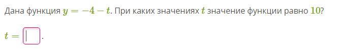 Дана функция y=−4−t. При каких значениях t значение функции равно 10?