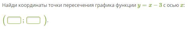 Найди координаты точки пересечения графика функции y=x−3 с осью x: