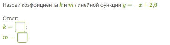 Назови коэффициенты k и m линейной функции y=−x+2,6.