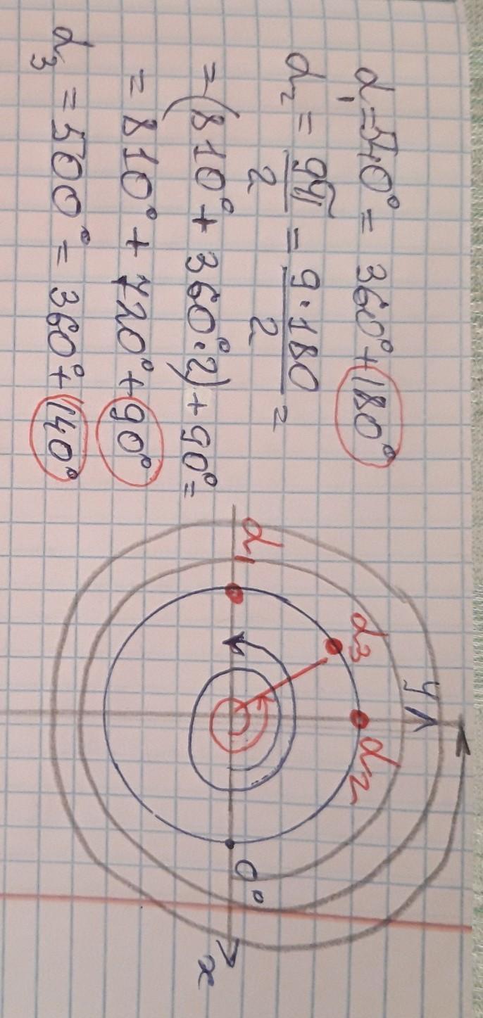 Отметить на единичной окружности положение точки P альфа, если альфа альфа1=540 альфа2=9П/2 альфа 3=-500