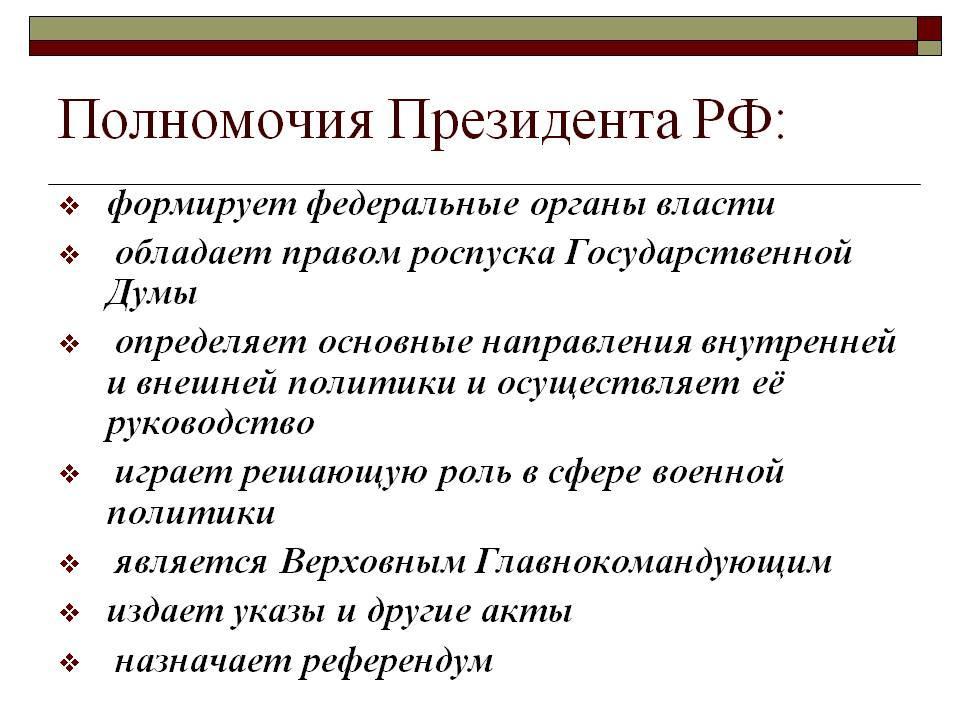 На основании четвёртой главы конституции президент России осуществляет следующие полномочия: