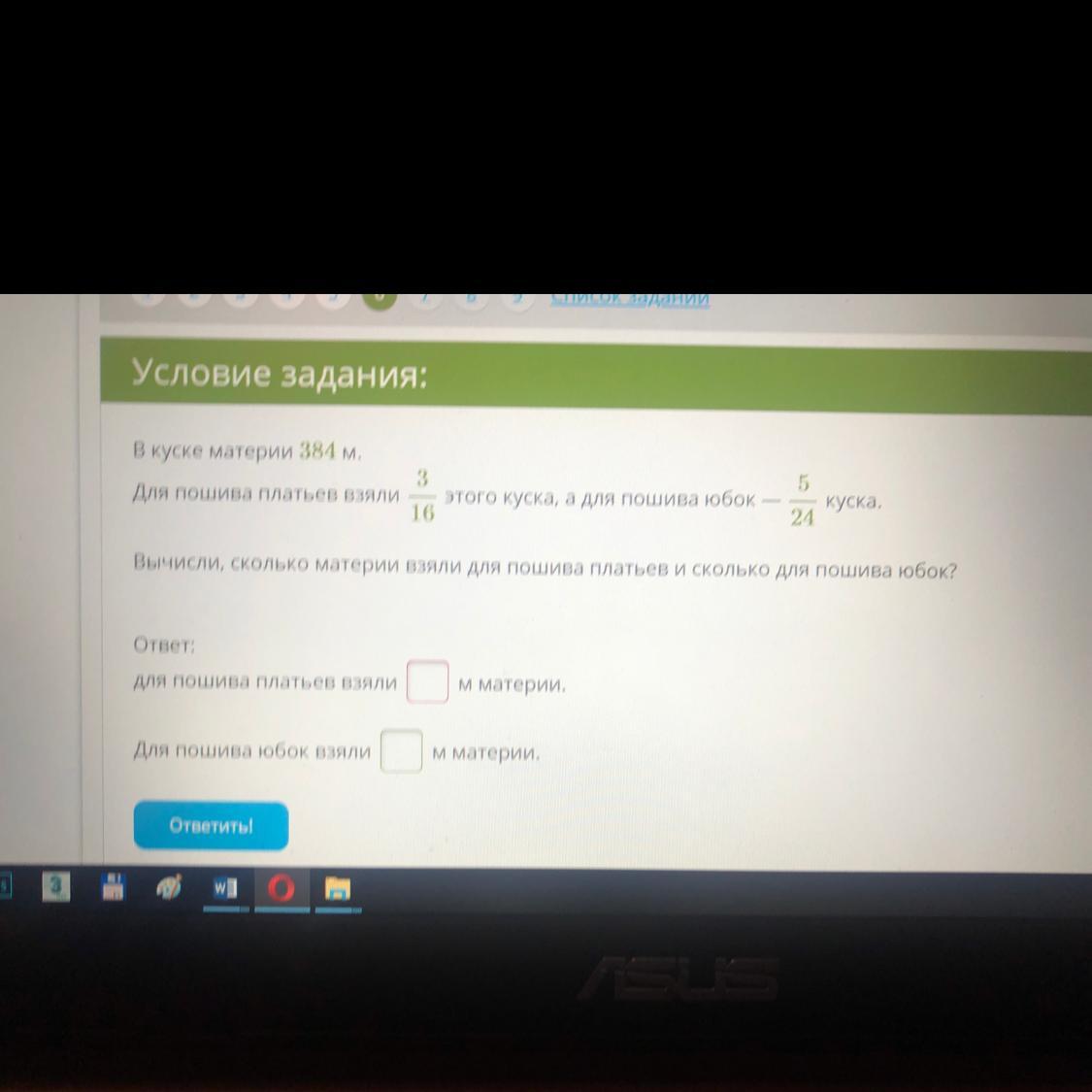 Вычисли, сколько материи взяли для пошива платьев и сколько для пошива юбок?
