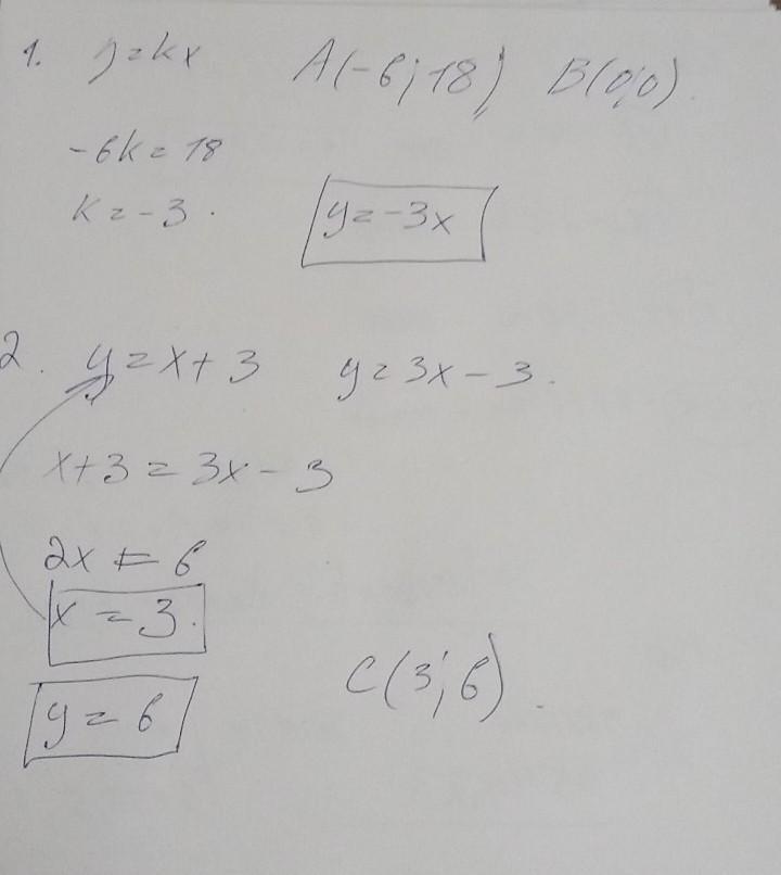 Здечь можно сказать, что в первом задании, раз график проходит через начало координат, то он имеет вид у=кх, а не у=кх+с
