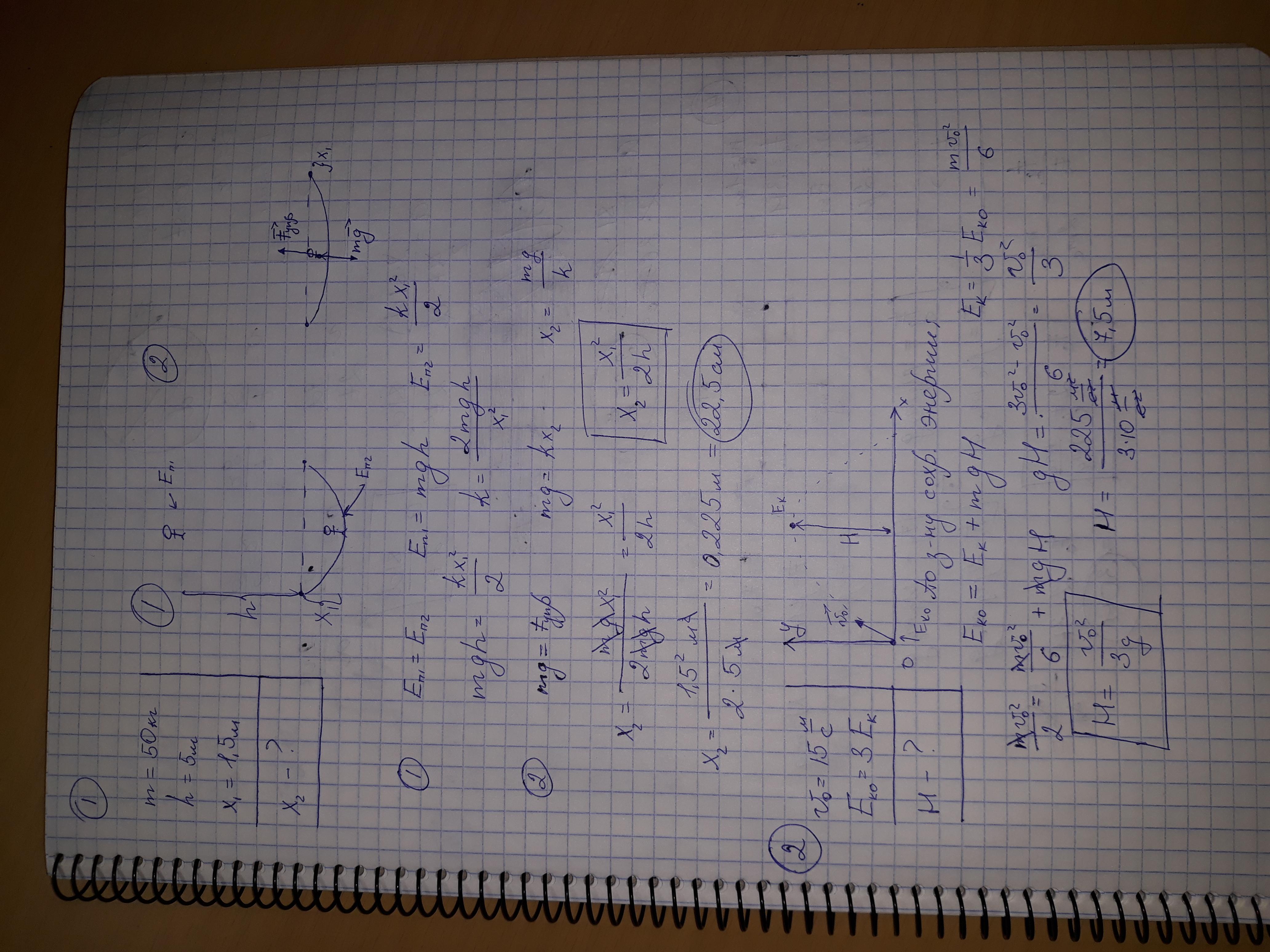Акробат, массой 50 кг падает в натянутую сетку с высоты 5 метров, при этом сетка прогибается в нижней точке на 1,5 м. На сколько прогнется сетка, если этот же акробат на нее не прыгнет, а спокойно зайдет?