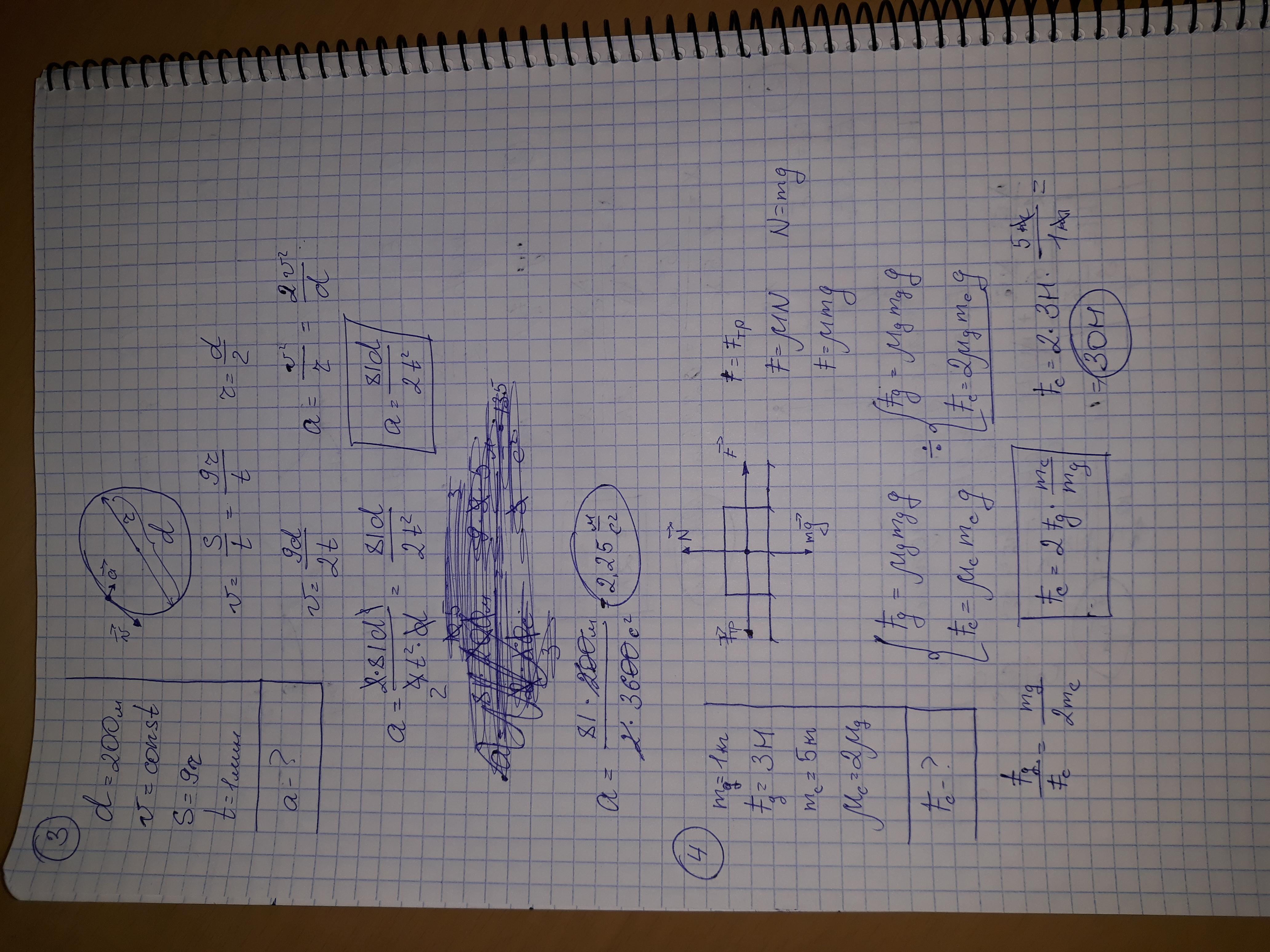Велосипедист едет по кольцевому велотреку диаметром 200 м с постоянной по модулю скоростью. За минуту он проезжает путь, равный девяти радиусам трека. Чему равен модуль ускорения велосипедиста?