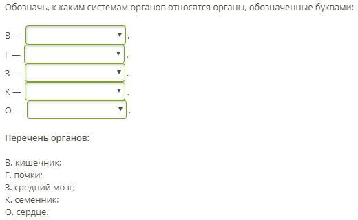 Ответ: В - пищеварительная, Г - выделительная, З - нервная, К - половая, О - кровеносная