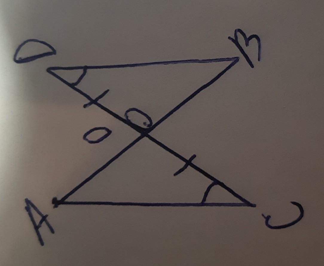 отрезки ав и сд пересекаются в о которая является серединой СД.ОДВ=АСО. Доказать что треугольник АОС=ВОД