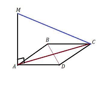 Так как МА⊥плоскости АВСД, то МА⊥АС ( АС∈ пл. АВСД) ⇒ ΔМАС - прямоугольный.