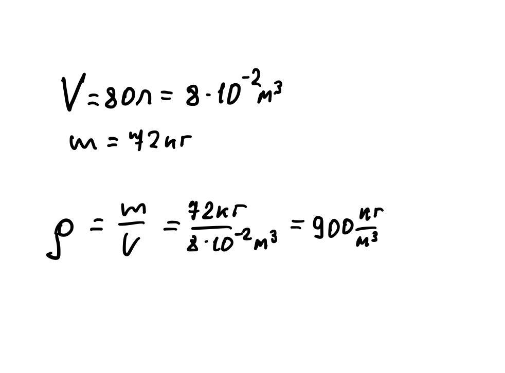 определите плотность жидкости , если её масса 72кг , а объём 80л
