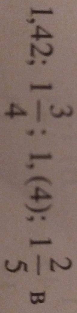 одна целая три четвёртых- это первое число, одна целая две пятых- это второе число, одна целых четыре десятых - это третье число , одна целая сорок две сотых - это четвёртое число.