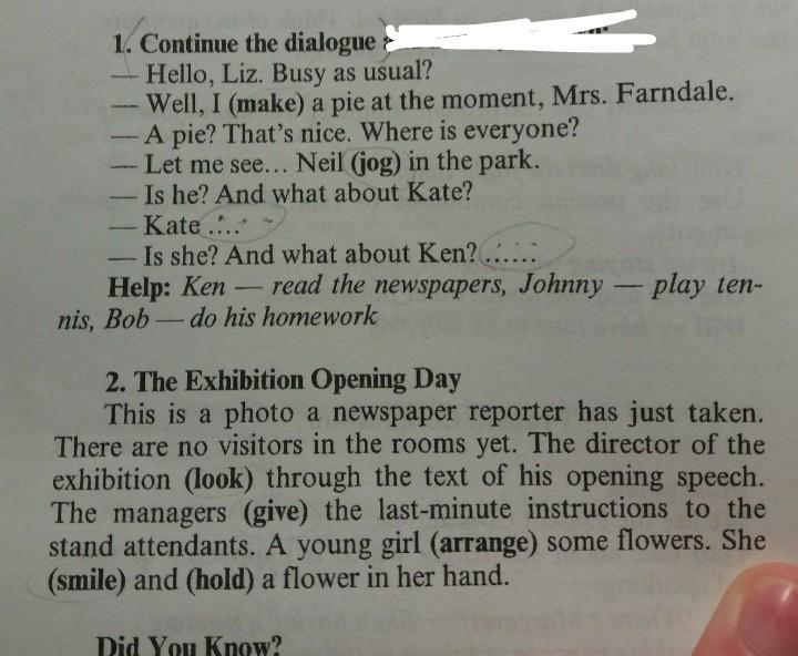 1)maked, joged, (не уверен) , дальше не знаю. и что ты замазал там? 2)looked, gived, arranged , smily and holdy
