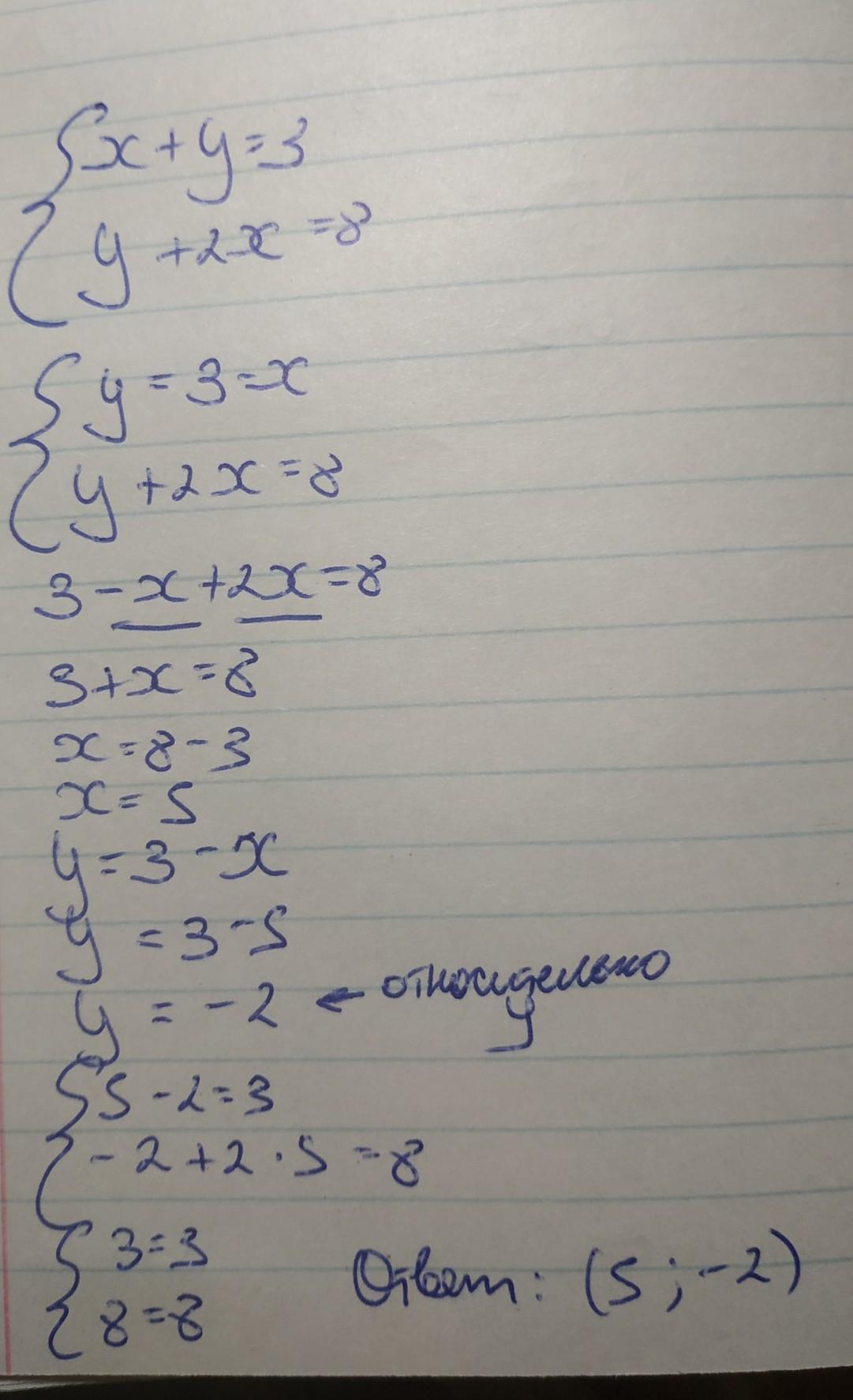 х+у=3, у+2х=8 ОЧ СРОЧНО