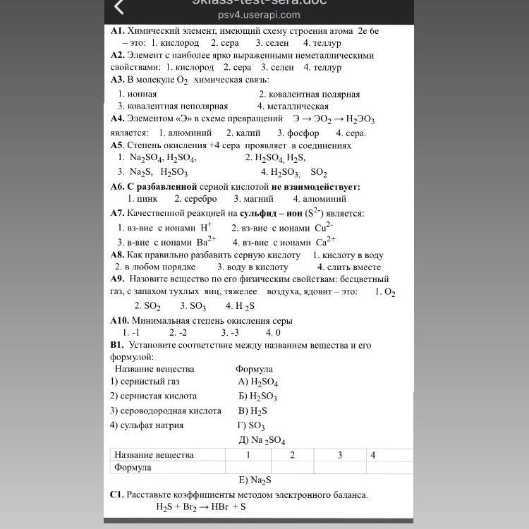 С1. Н2S + Br2 = HBr + S