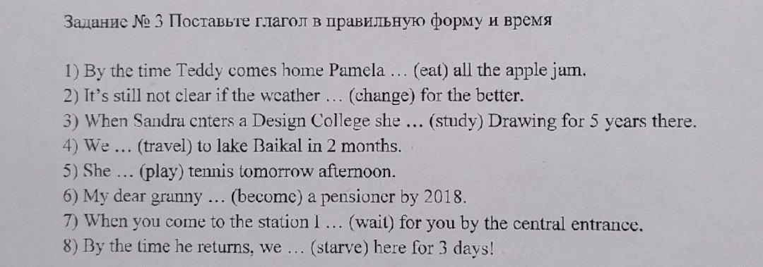 1) By the time Teddy comes home Pamela (will have eaten) all the apple jam.