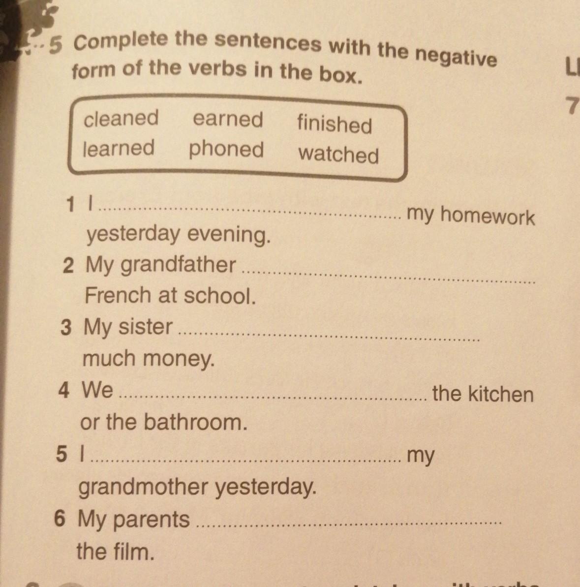 2- learned 3-earned. 4-cleaned 5-Phoned 6-watched