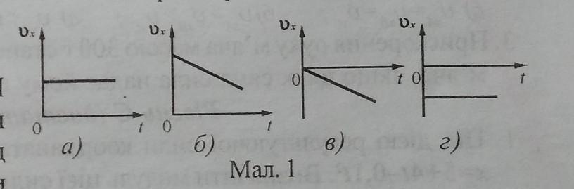 На якому з графіків відображено залежність проекції швидкості руху тіла від часу у випадку коли рівнодійна всіх сил, що діють на нього, не змінюється з часом і має напрям протилежний до напрямку руху