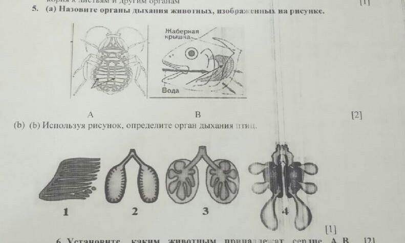 А) Трахеи у насекомого( проходят по всей полости тела) и жабры у рыбы( фильтруют воду и захватывают кислород);