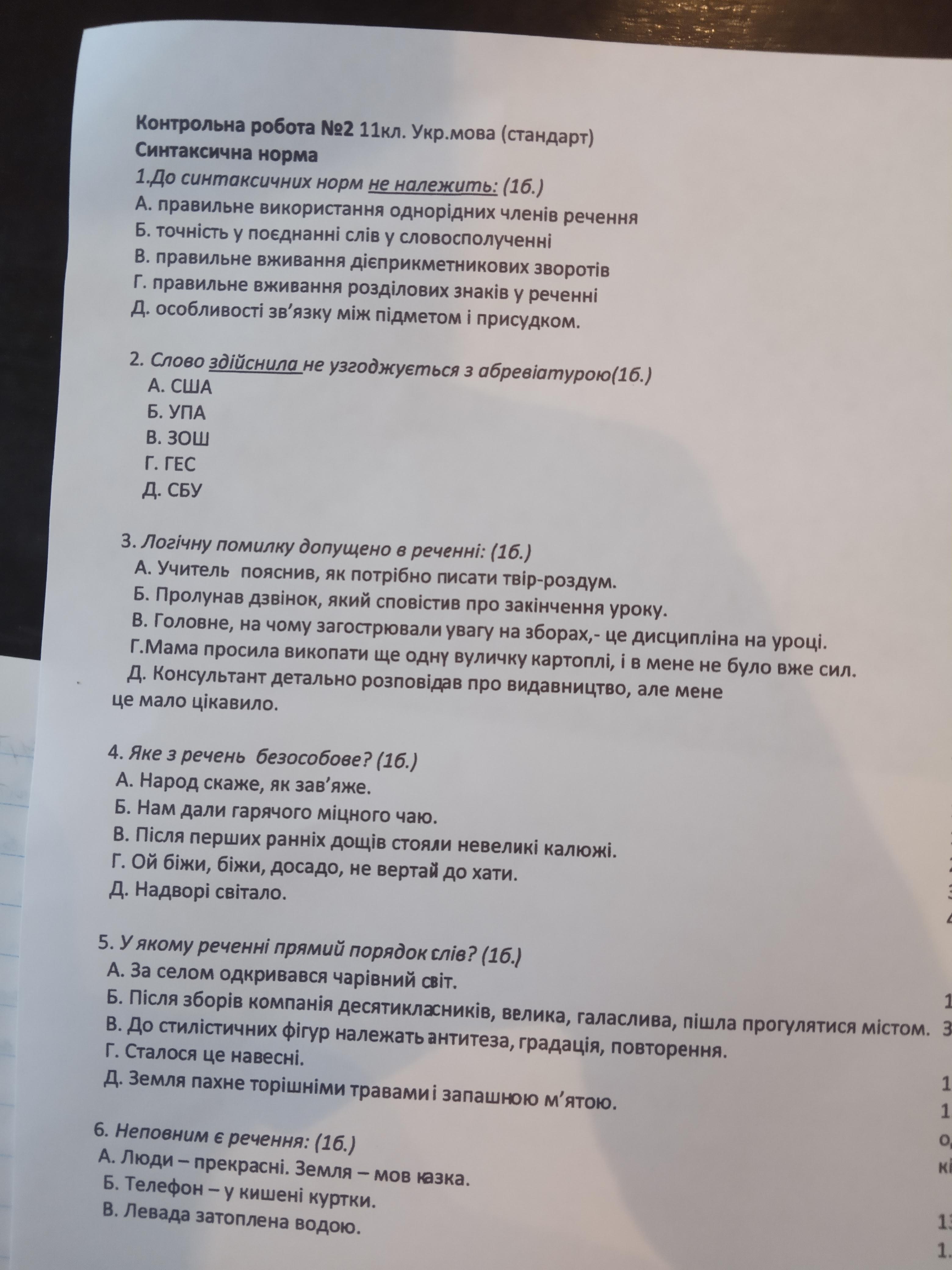 5. Д(підмет, присудок, означення йдуть по порядку)