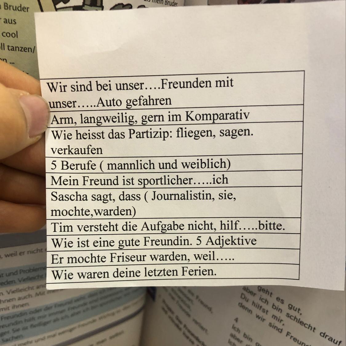 10. Meine letzen Ferien waren wunderbar. Ich schlief viel, faulenzte und surfte im Internet. Ich half meiner Mutter im Haushalt. Ich arbeitete mit meinem Vater in Garten. Ich buk mit meiner Oma einen Kuchen. Abends sah ich oft fern, las ein Buch oder spielte am Computer.