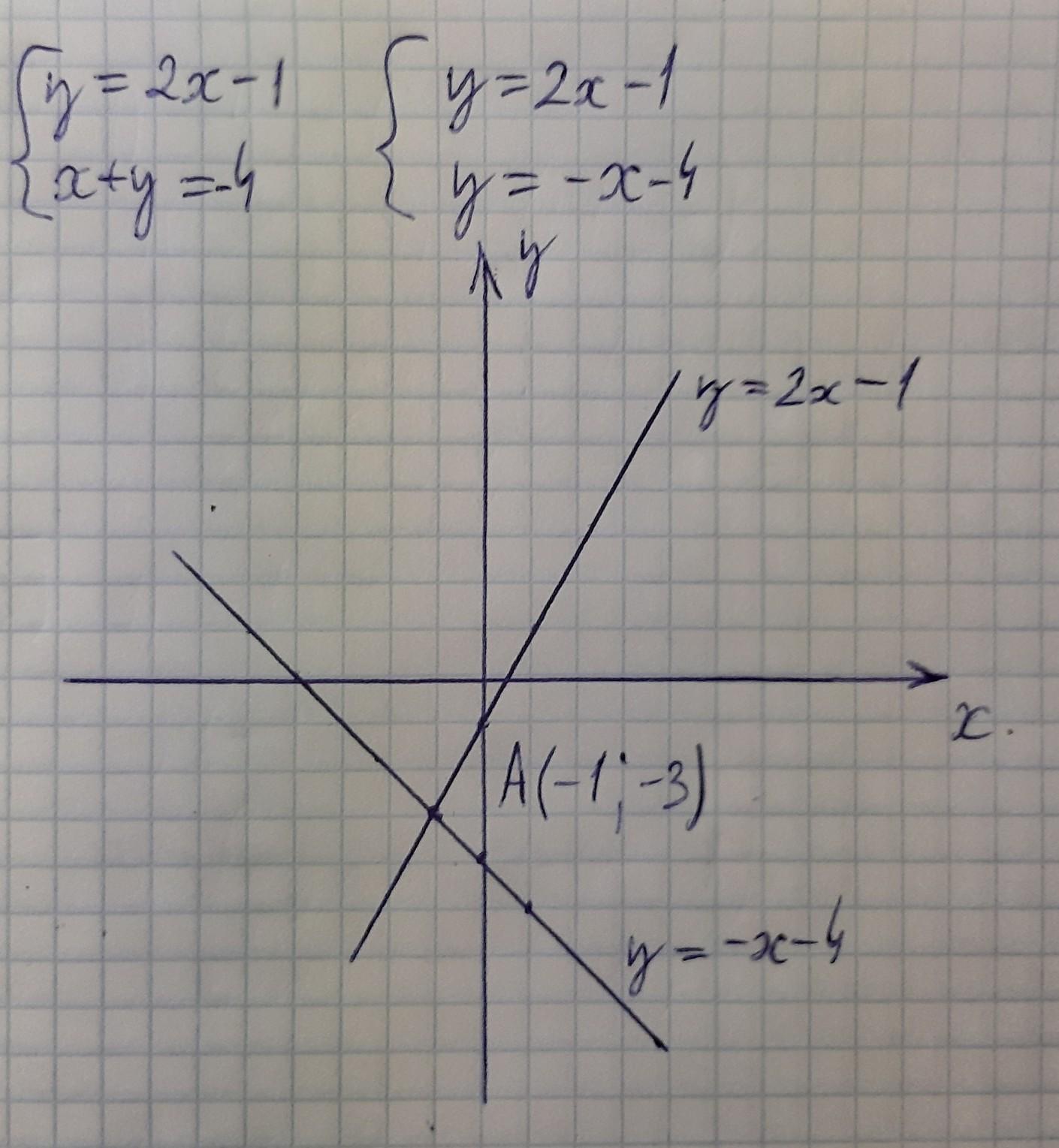решите систему уравнений графическим методом систему уравнений и найдите координаты точки пересечения графиков функций: у=2x-1