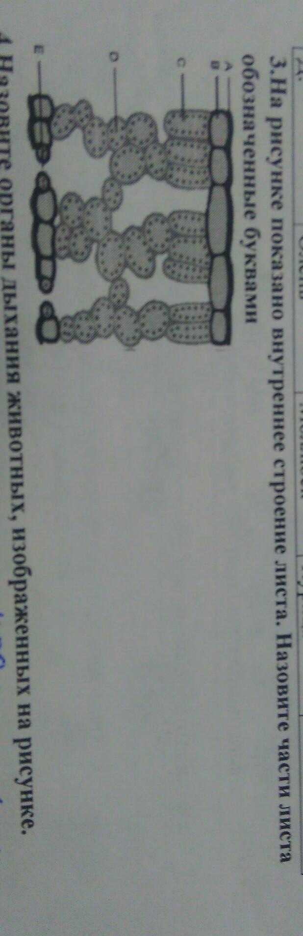 на рисунке показано внутреннее строение листа Назовите части листа обозначеные буквами