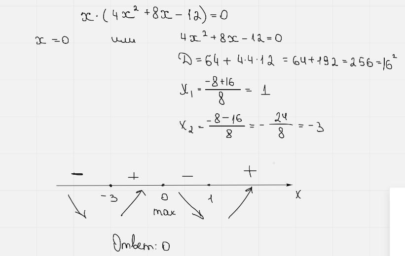 Ответ: Нужно найти сначала производную функции, потом приравнять производную к нулю и найти нулю производной.