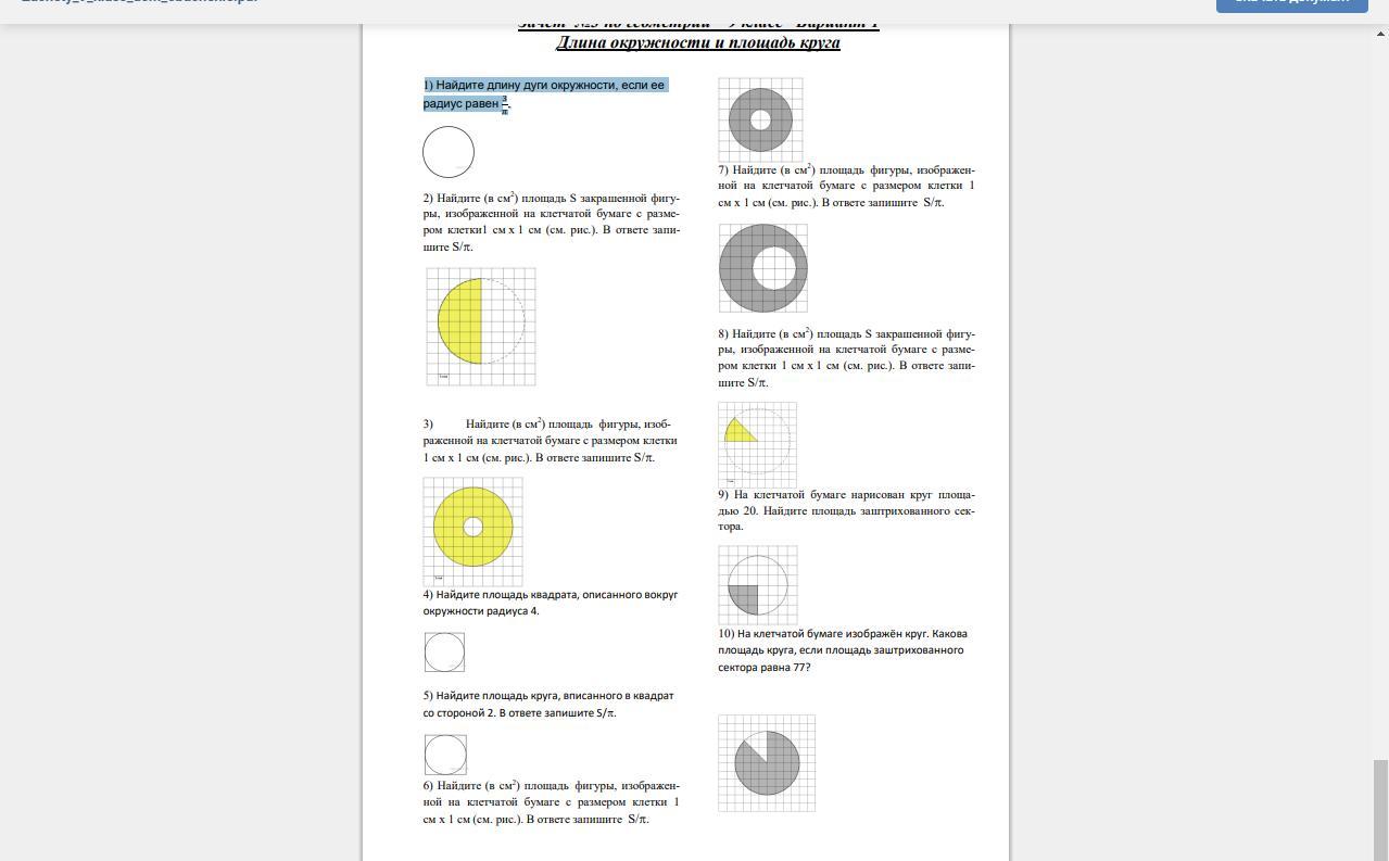 №3. d=2R=8 ⇔R=4 S=16π (полный круг), Rm=1 (малый белый круг) Sm=1π
