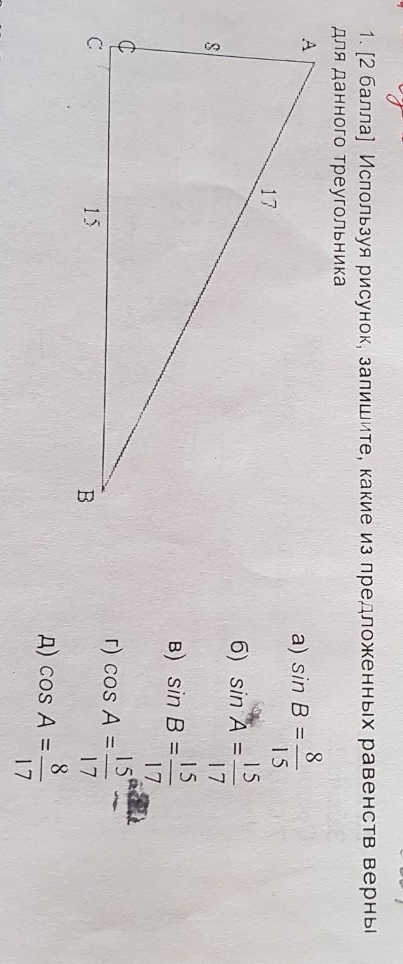 треугольник прямоугольный так как 17^2=15^2+8^2