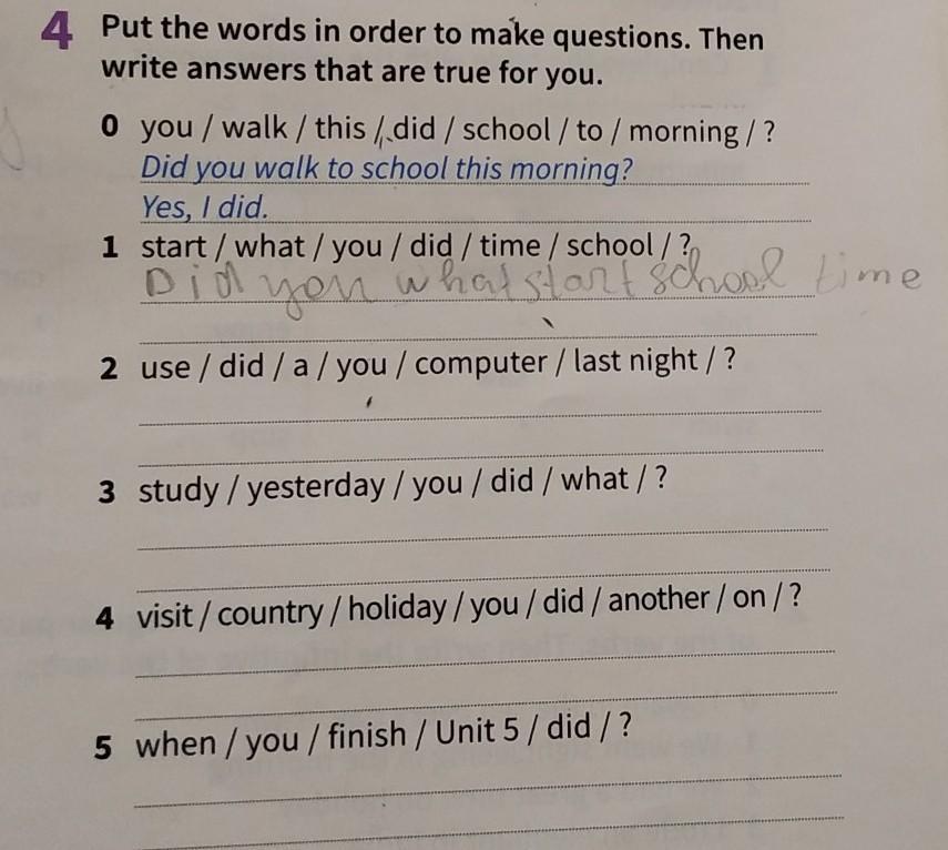 1 What time did you start school? (Во сколько начались занятия в школе?)