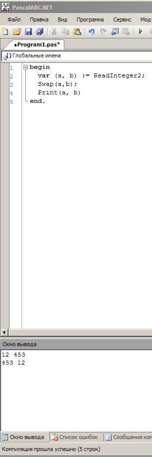 Даны 2 целые переменные а и б - целочисленные. Составить программу, которая меняет а и б местами. Если что это паскаль. Нужно использовать var