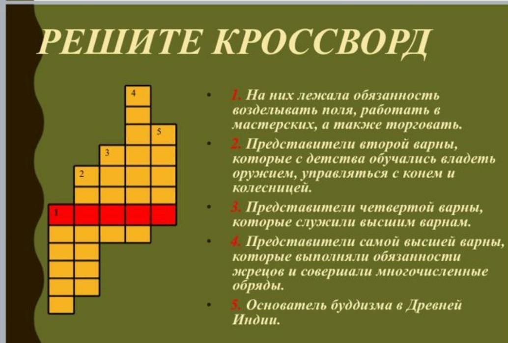 1 Вайшьи 2кшатрии 3шудры 4брахманы 5будда