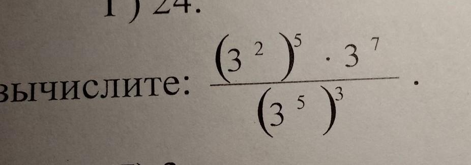 это будет три в десятой степени умножено на три в седьмой и деленоое это на три в пятнадцатой и равно это будет при умножении степени с одинаковым основанием складывается а при делении вычитаются и поэтому будет ровно три в семнадцатой делем на три в пятнадцатой степени и будет ровно три во второй степени и это ровно 9