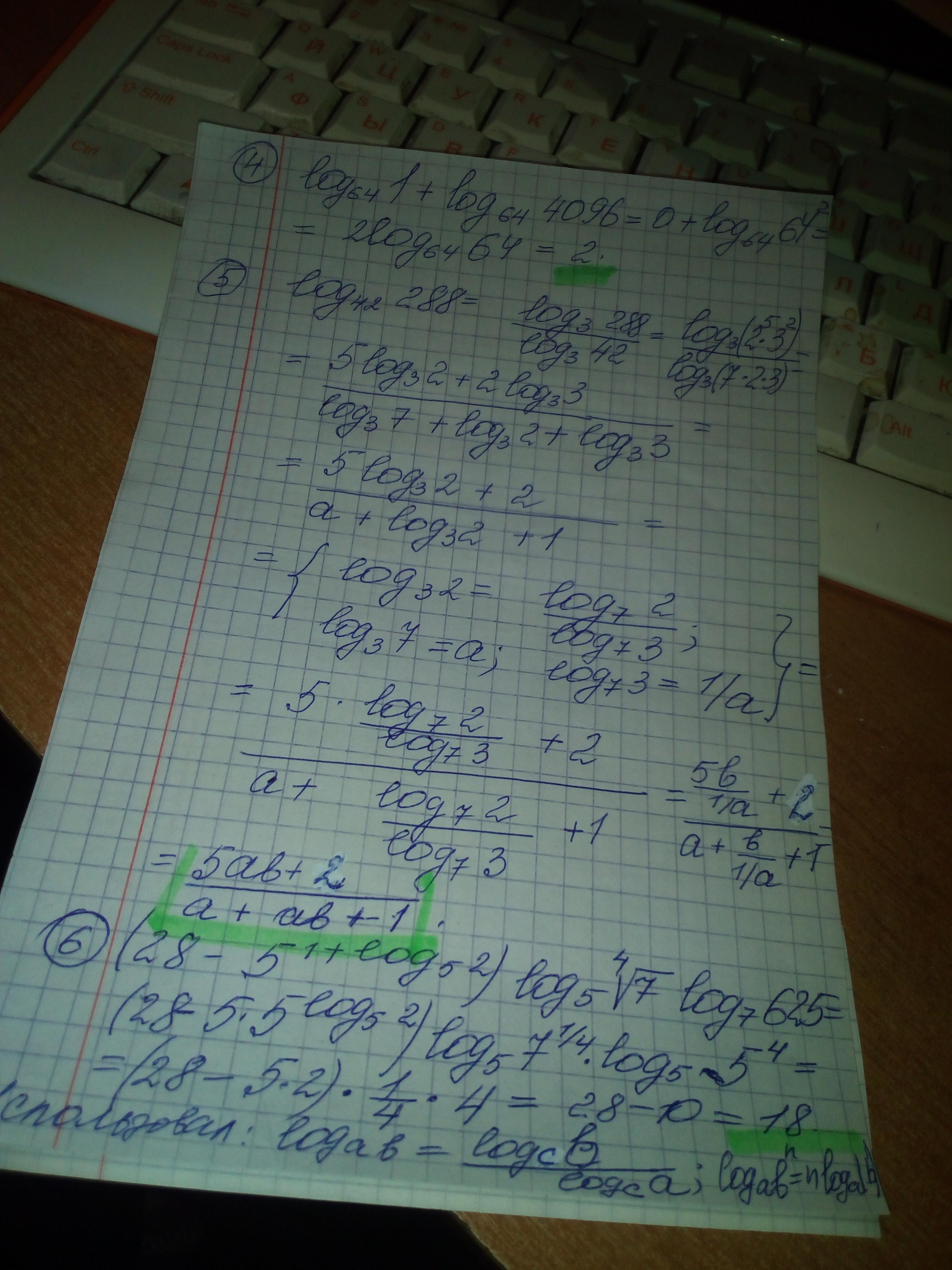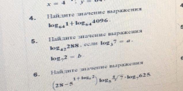 4. log₆₄1+log₆₄4096=0+log₆₄64²=2·log₆₄64=2·1=2