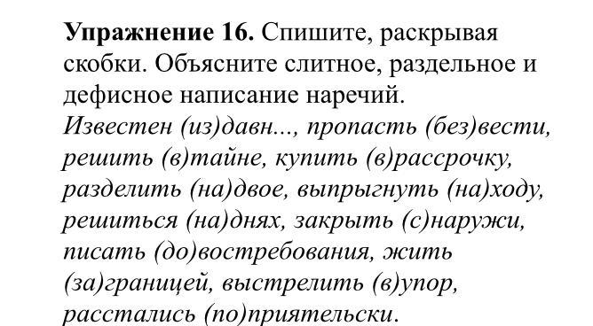 известен издавне, пропасть безвести , решить в тайне купить в рассрочку , разделить надвое, выпрыгнуть на ходу кажется на днях , закрыть снаружи, писать до востребования , жить за границей , выстрелить в упор, расстались поприятельски.