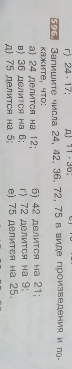 Запишите числа 24, 42, 36, 72, 75 в виде произведения и по-