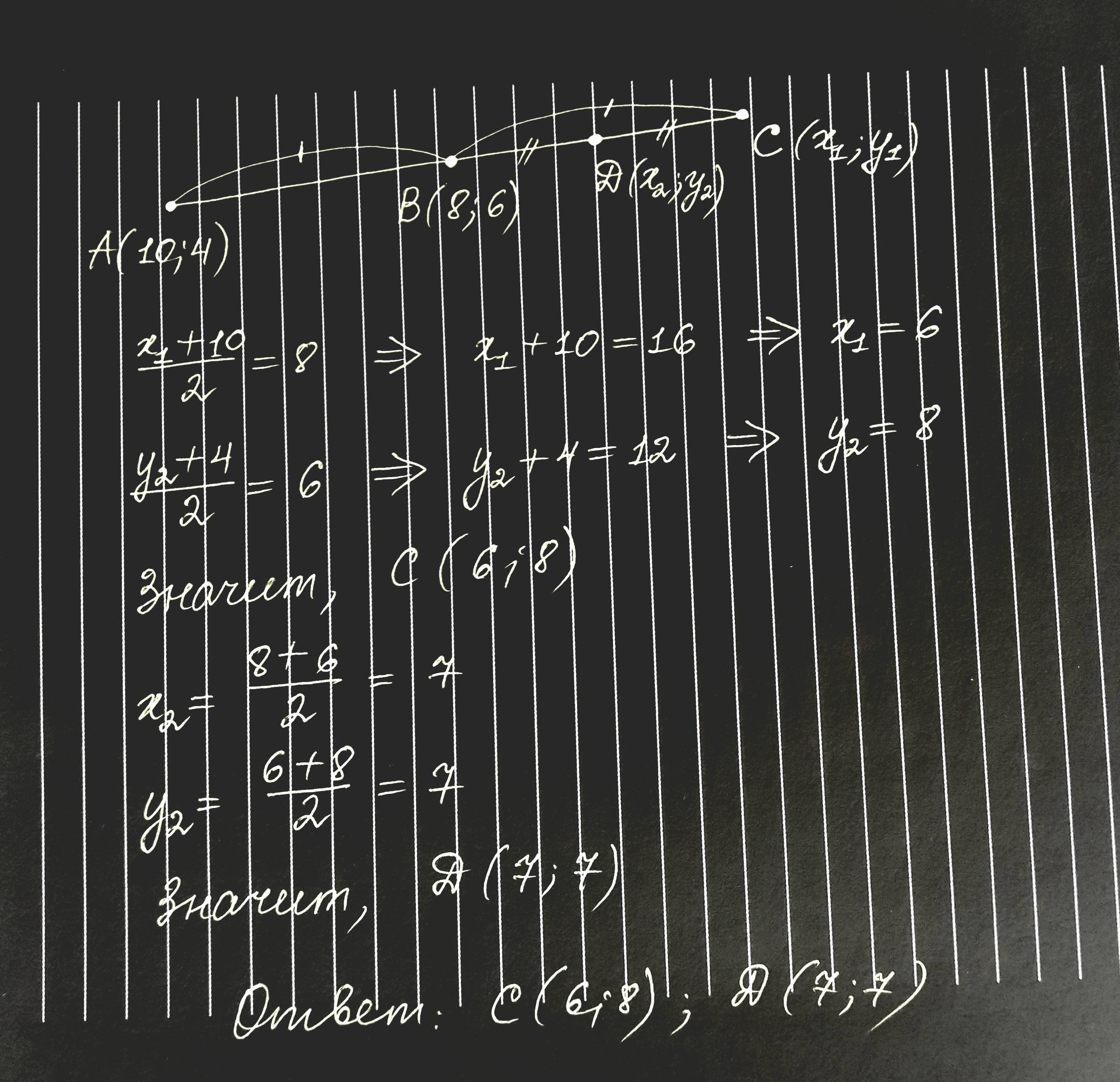 Найди координаты точек C и D, если известно, что точка B — середина отрезка AC, а точка D — середина отрезка BC.