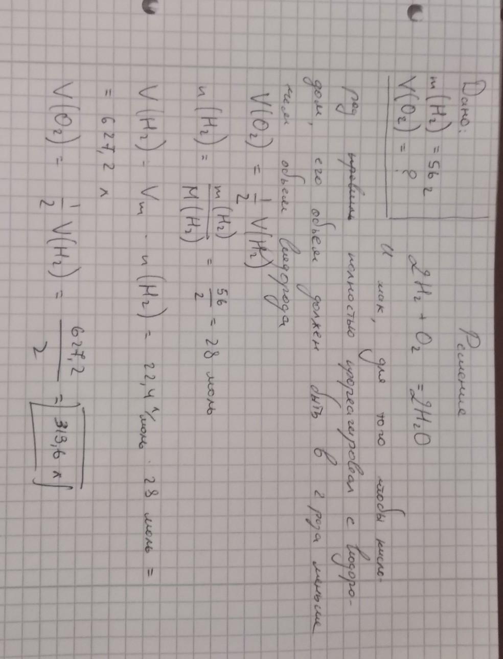 сколько литров кислорода должно вступить в реакцию с 56г газа кислорода для образования воды??? ЗА РЕШЕНИЕ И ОТВЕТ 30 БАЛЛОВ!!!