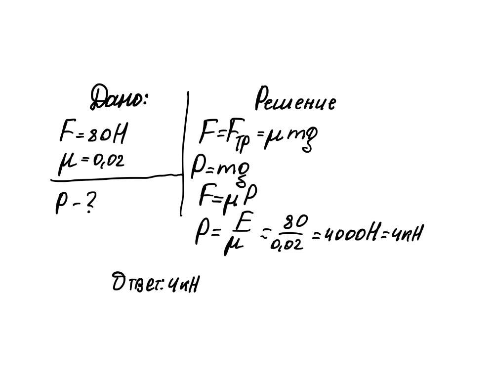 мальчик везет санки прикладывая в горизонтальном направлении сила 80 Ньютонов каков вес тела если коэффициент трения скольжения равен 0,02