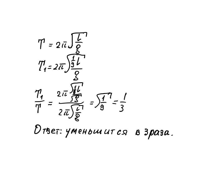 Определите,как и во сколько раз изменится период колебаний груза,подвешанного на нити.если от нити отрезать 8/9 её длины.