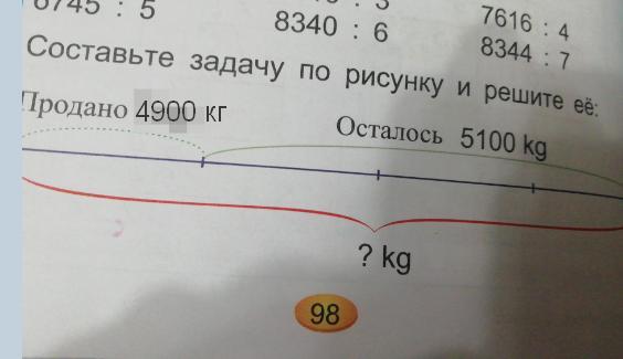 1. На склад завезли партию удобрений. За месяц продали 4900 кг. Сколько килограмм удобрений было завезено, если, к началу следующего месяца, на складе осталось 5100 кг?